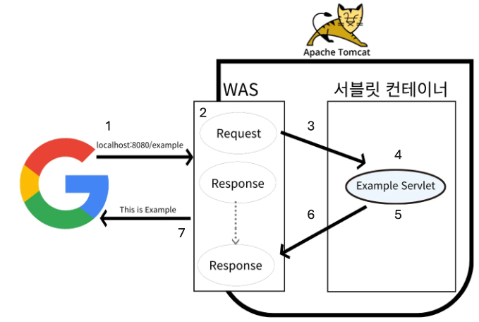 - 웹 서버는 요청 URL에 해당하는 Servlet이 있는지 확인하고, 해당 Servlet을 관리하는 Servlet Container로 요청을 전달합니다.