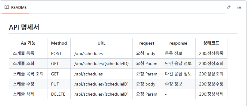 - ✅ API명세서는 프로젝트 root(최상위) 경로의 README.md 에 작성