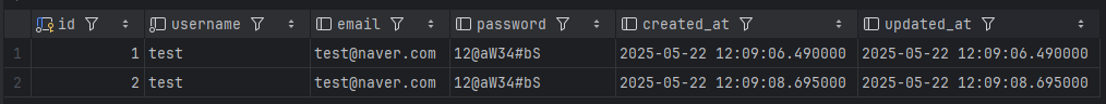 - 동일한 Email을 갖는 2명의 유저를 생성하였습니다.