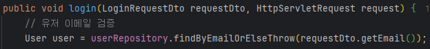 - 로그인을 진행하는 로직에서 유저 이메일을 검증하고 하나의 유저를 리턴 받을 때, 위 코드와 같이 실행됩니다.
