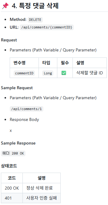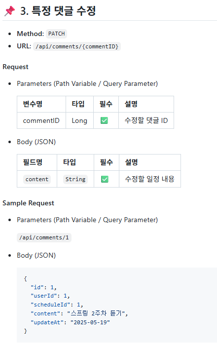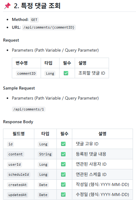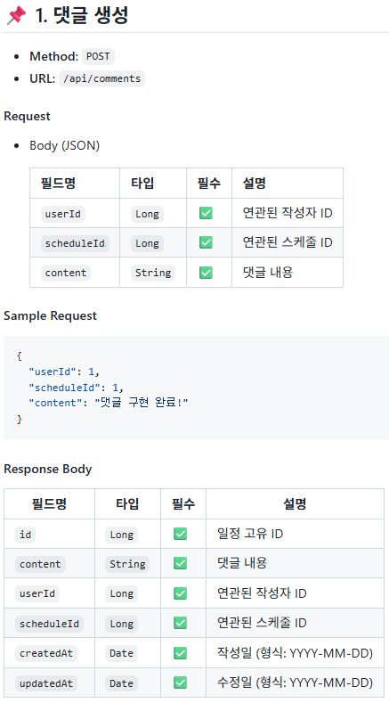 - ✅ 댓글과 일정은 연관관계를 가집니다.