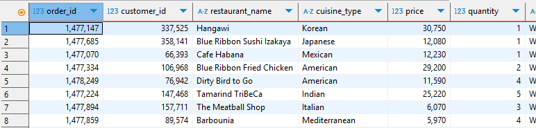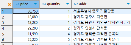 - food_orders 테이블에서 price, quantity, addr 컬럼을 가져온다는 의미이다.