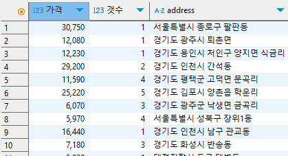 SELECT price as "가격",