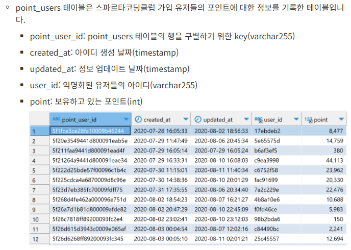 - FROM → users u LEFT JOIN point_users p ON u.user_id=p.user_id